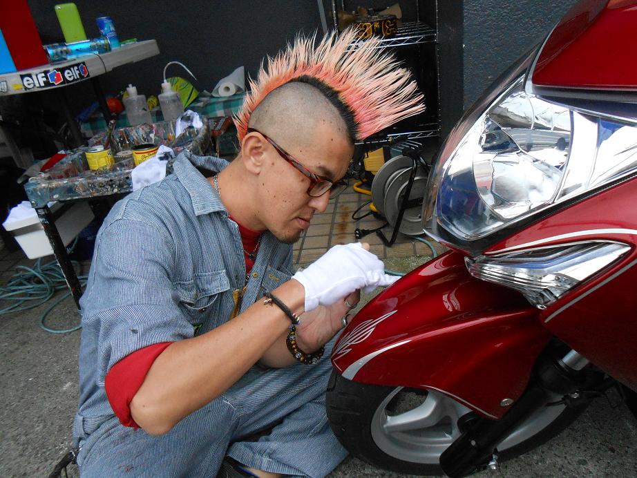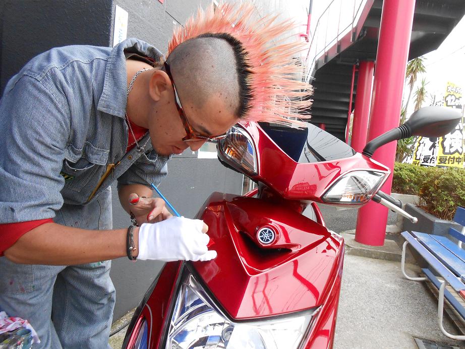 シルバーでラインを引いて頂きフロントパネルにワンポイントで金魚を描いて頂きました