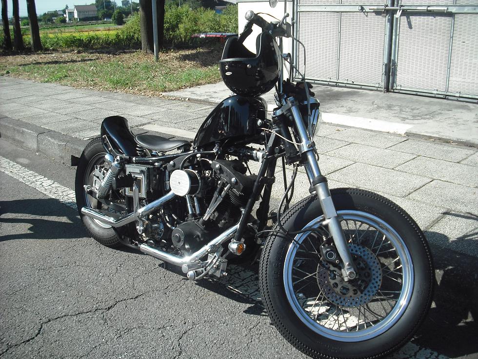 ルート変更で山道を気持ち良さそうに走るショベルヘッドのハーレーに跨るドックさん