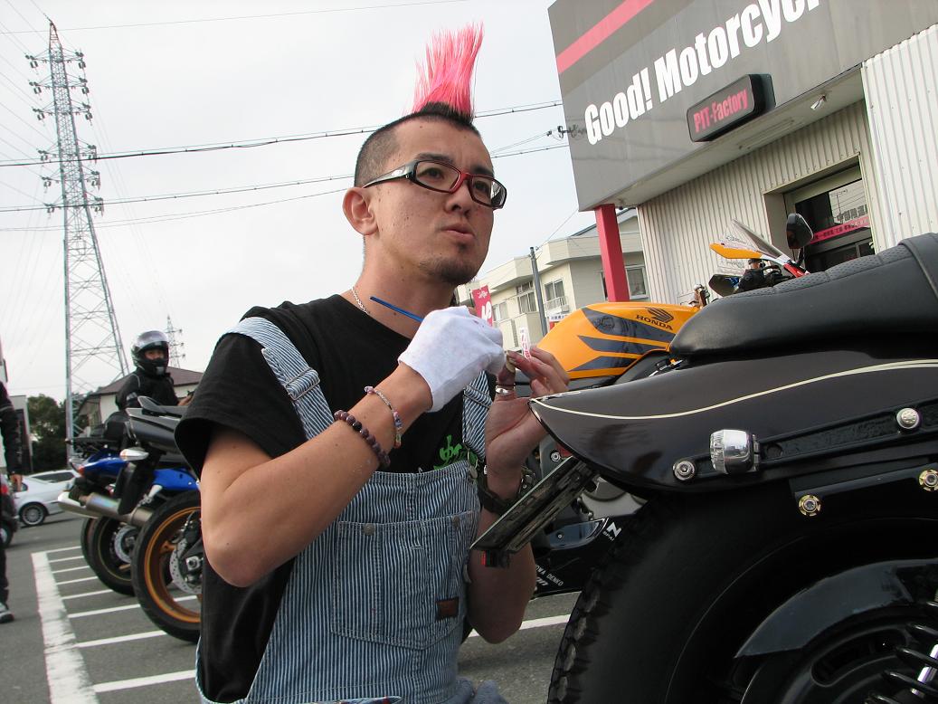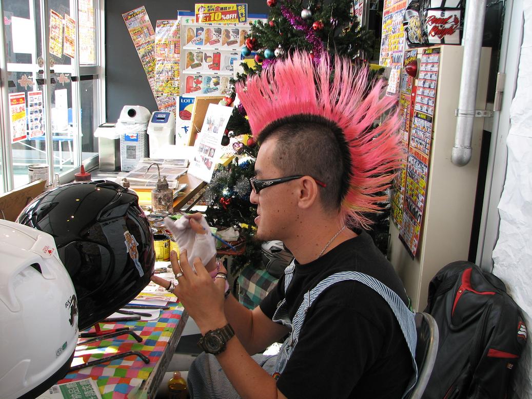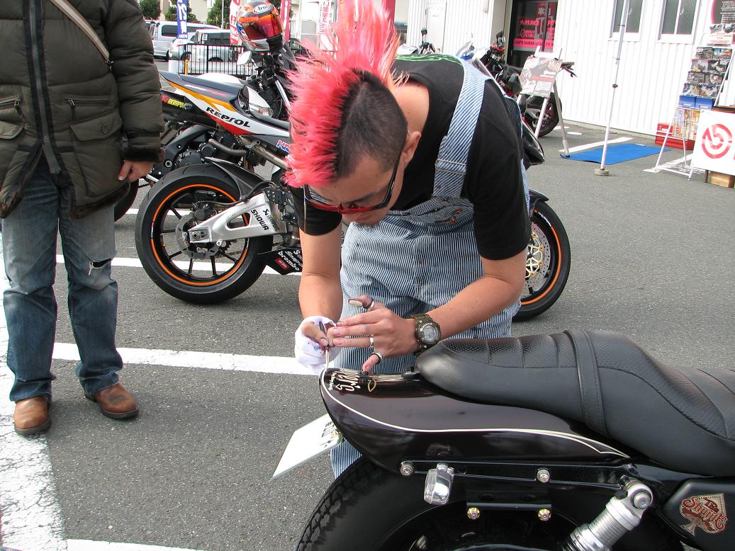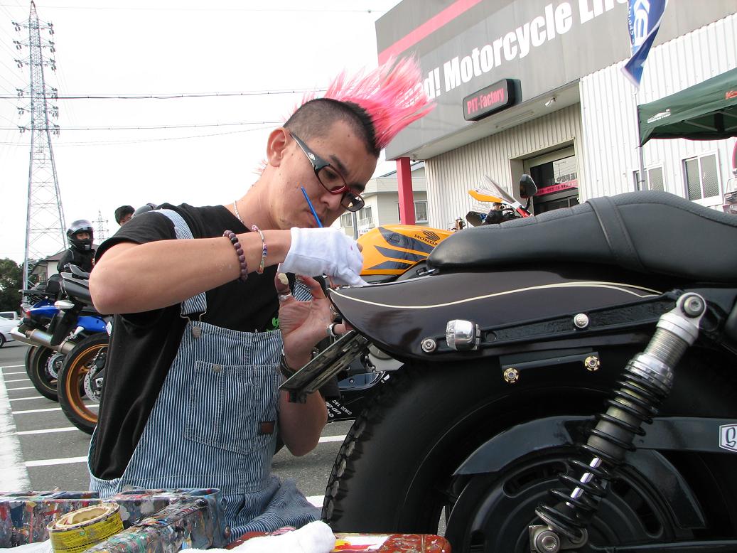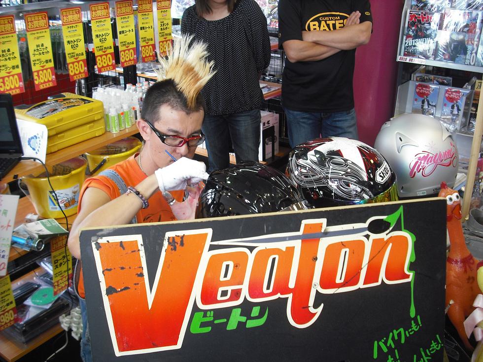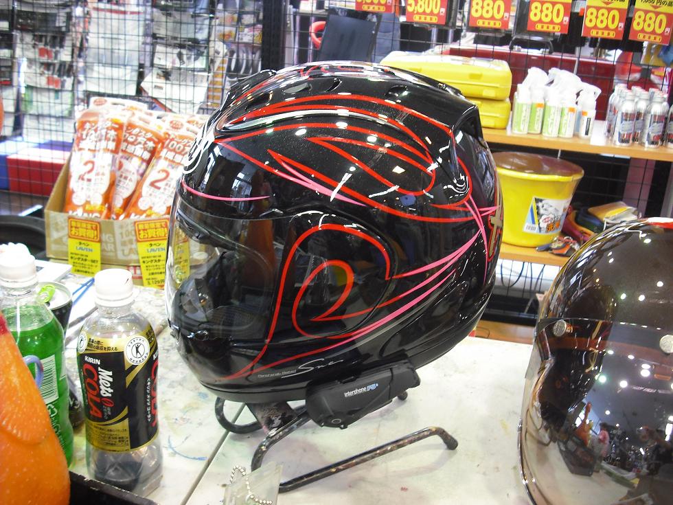 今回は一緒に行ったお友達がヘルメットにピンストを入れてもらいました