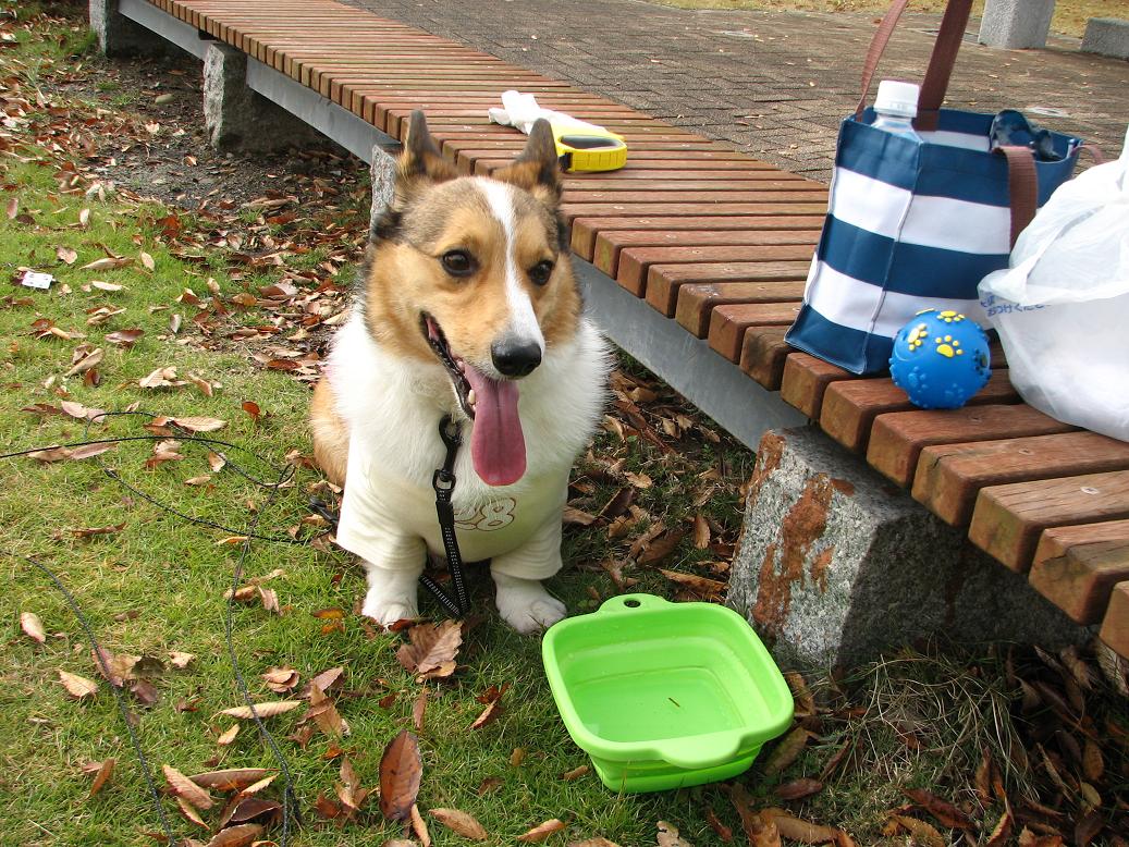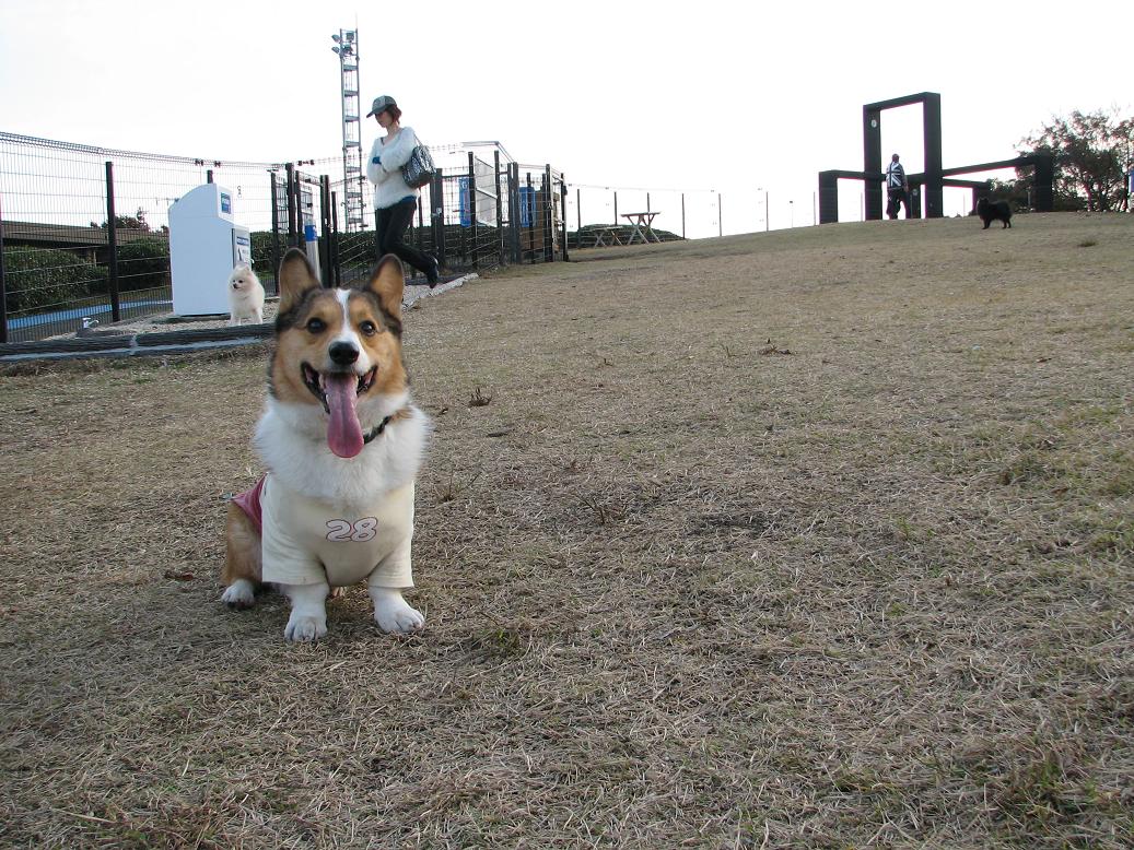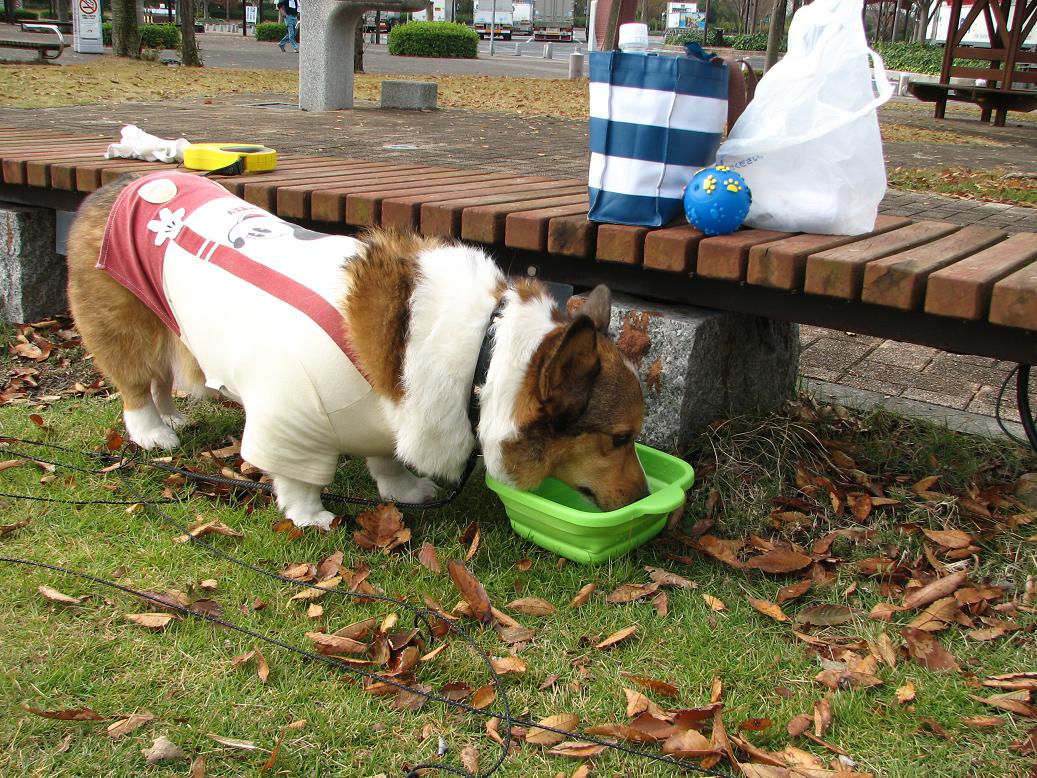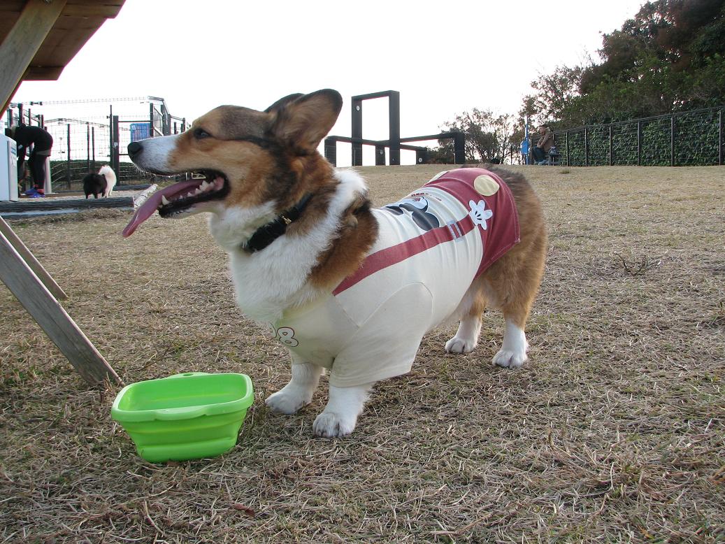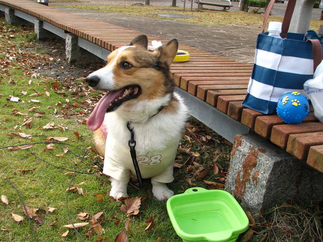 帰りの牧の原SAで他のワンちゃんに混じりながらボール投げをしました