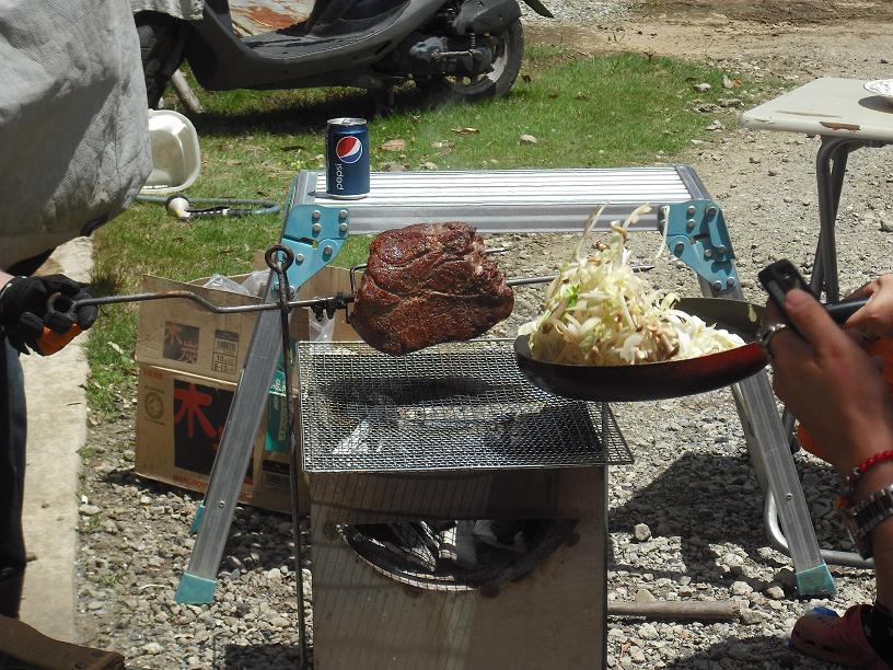 凡さんのお庭でお肉を回して頂きこうして食べるお肉は最高に美味しかったです