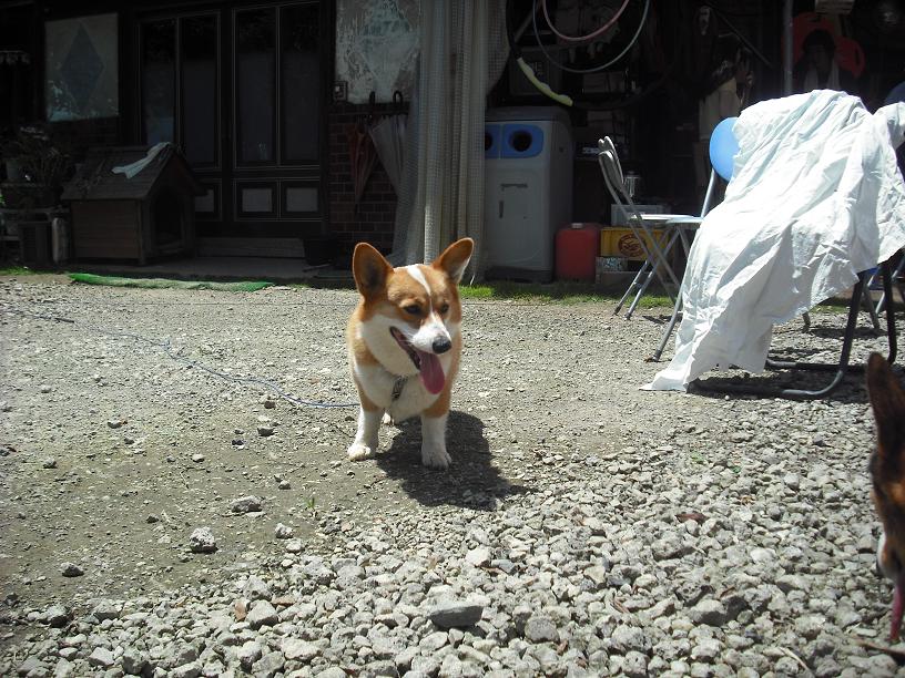 ランに行く前にもうバテ気味の小梅ちゃん水道でシャワーwww(笑)