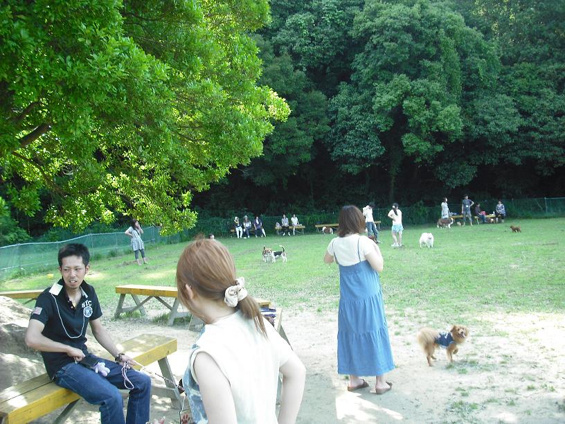 飼い主の腹ごしらえも終えだいぶ涼しくなって来たので皆でドックランへ