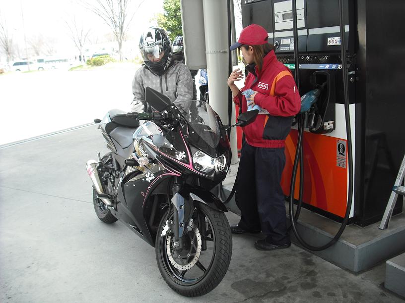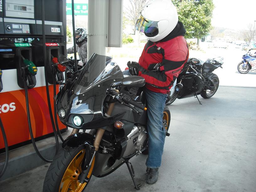 有料道を使って来たので予定より早く到着お店の近くのGSで補給しながら休憩
