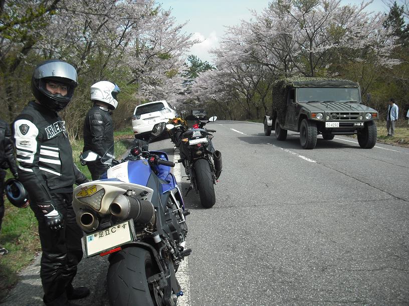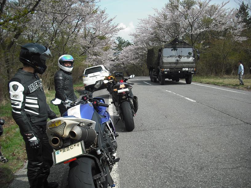 途中自衛隊の演習場近くを通ったのでかなりの台数とすれ違い