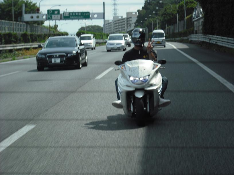 私とたんしおさんはエアコンが効いた車内ケンイチさんは渋滞の中マジェ