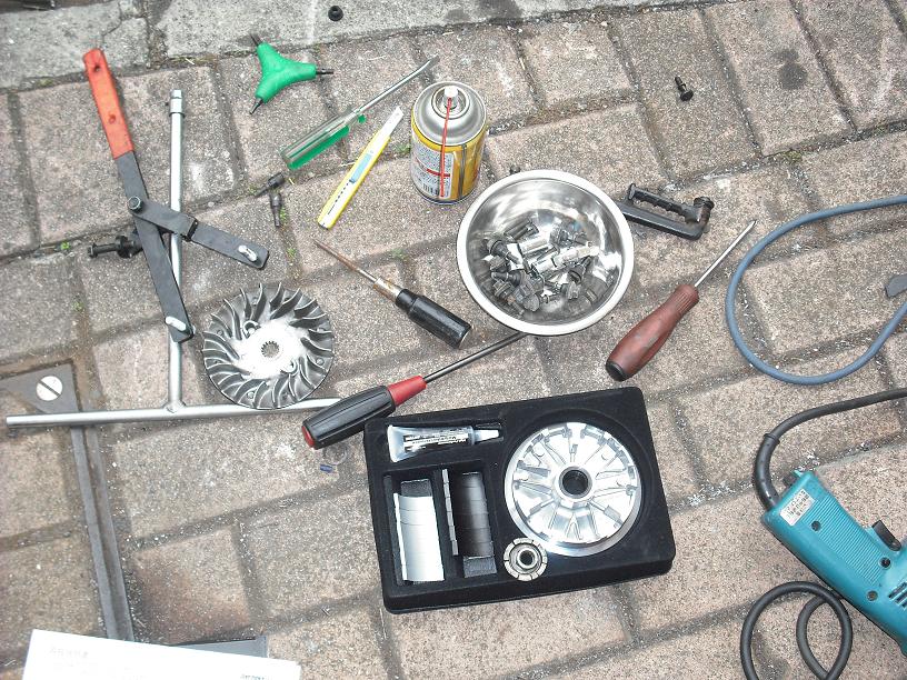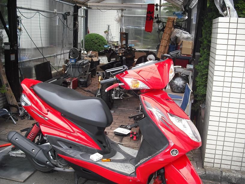 作業の合間に我がシグナス君のプーリー交換をしてもらおうと