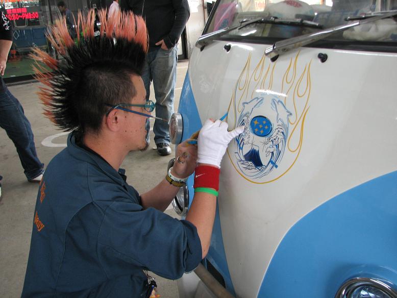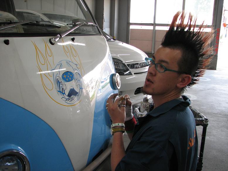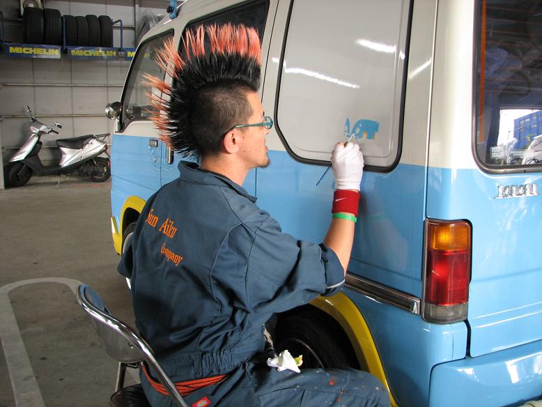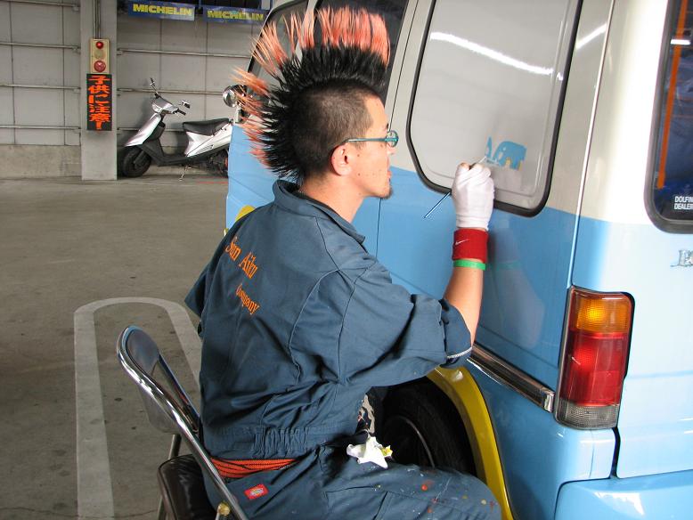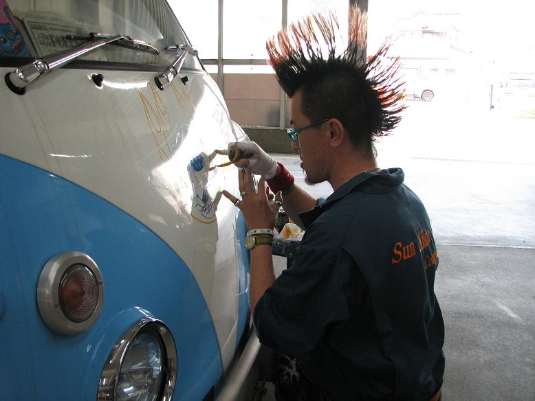 食事を終えて休む暇もなく浩人さんのミニバスにかかるビートンさん