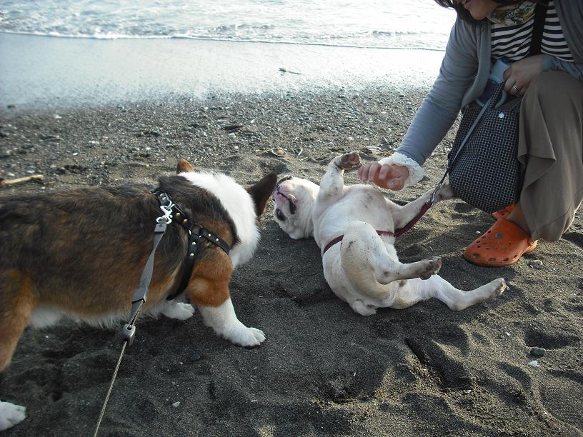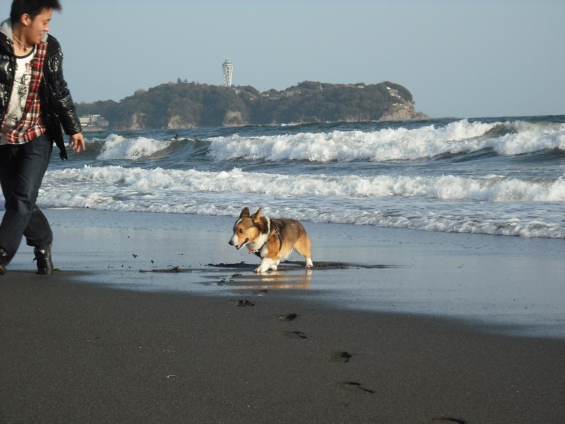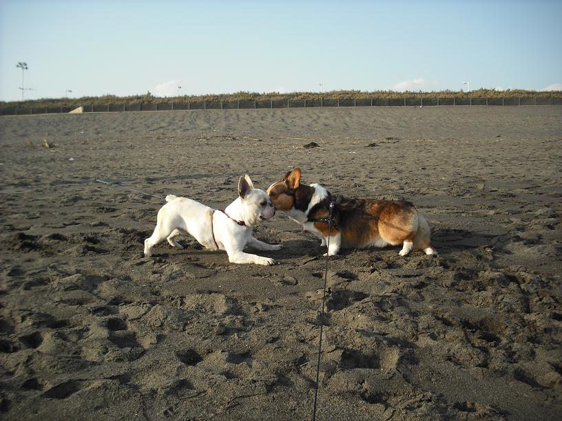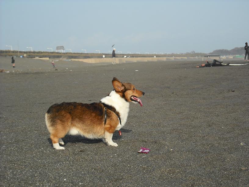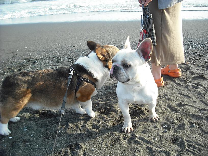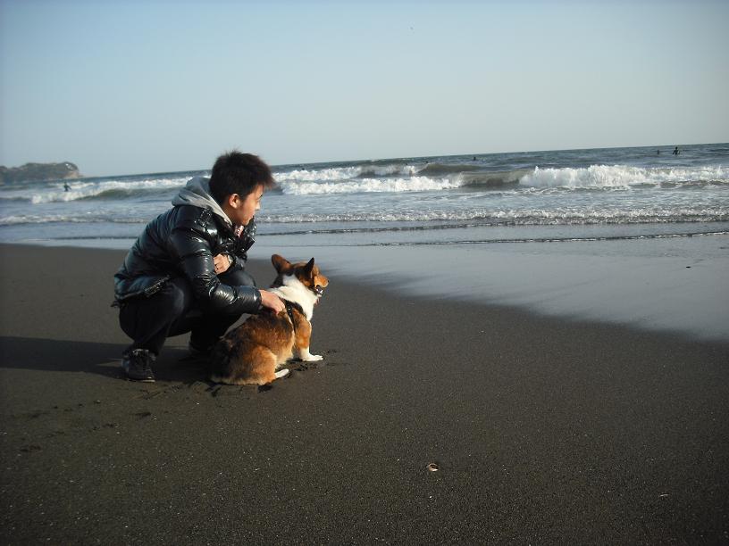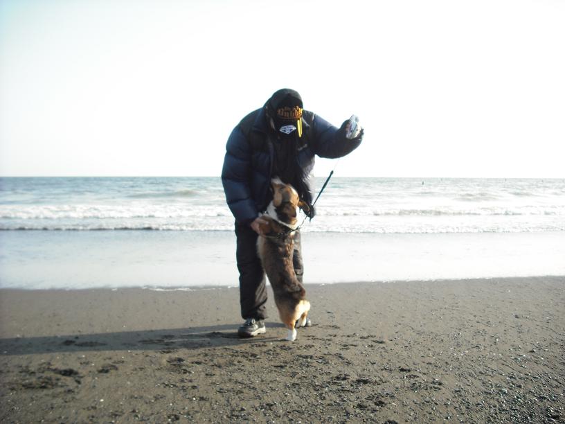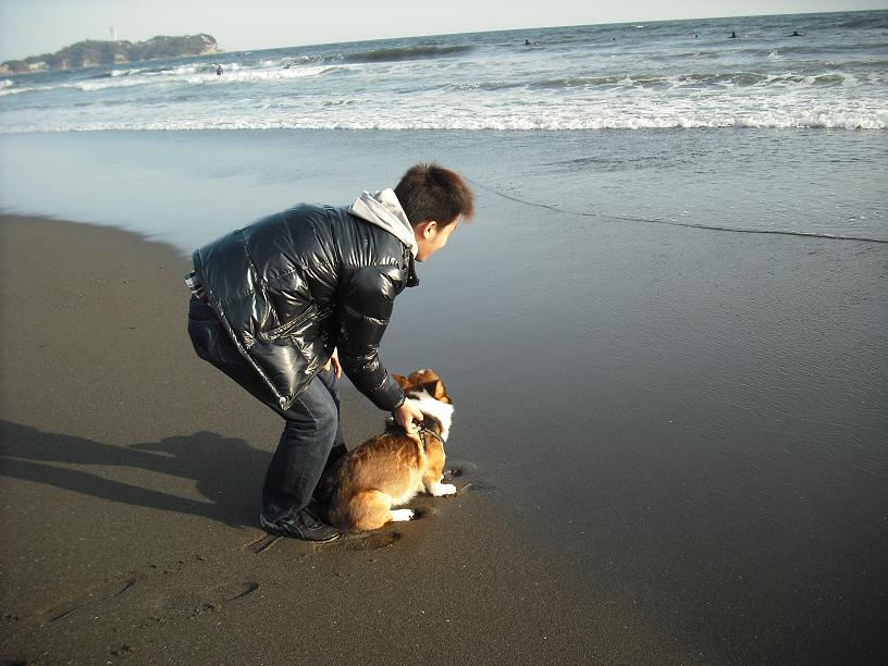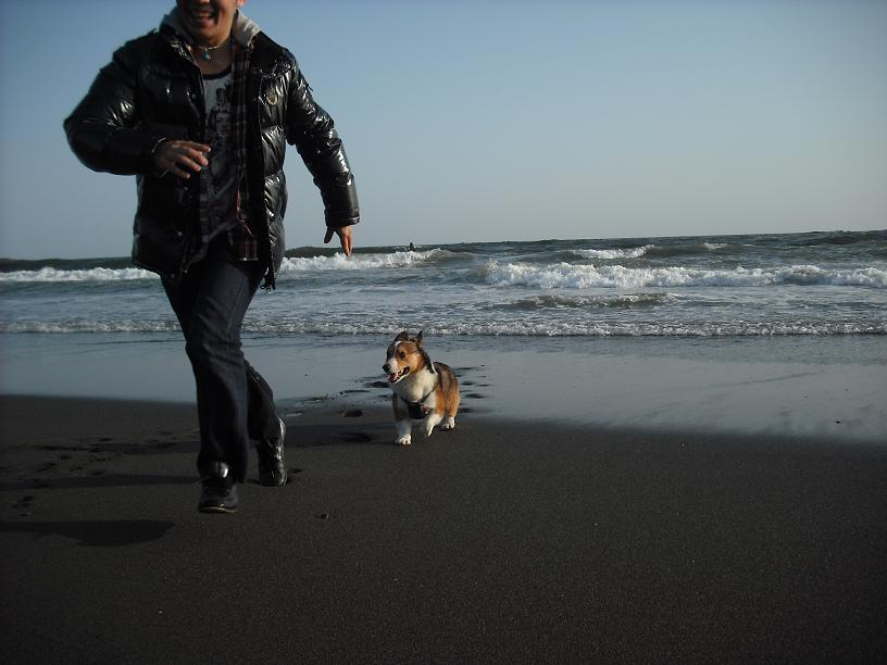レミー君初めての海に逃げまくりでした(^^ゞポリポリ