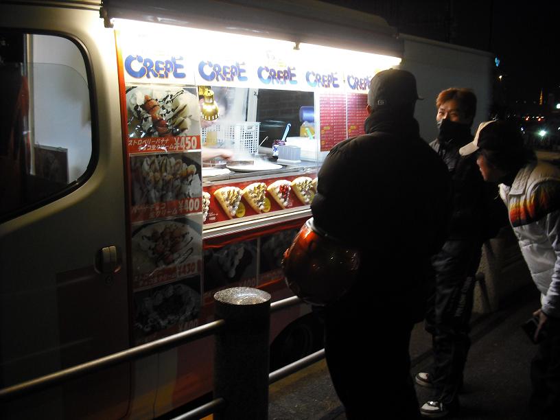 着いたらたまたま居たクレープ屋さんにたんしおさん先頭にドックさんマウさんマークさんとみなさん買い求めて居ました