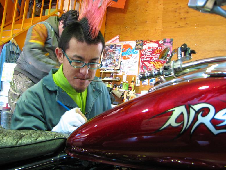 キャンディーオレンジをベースに柄&ピンスト入りかっちょいい~v(*'-^*)-☆