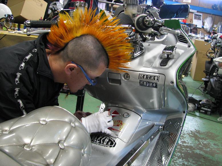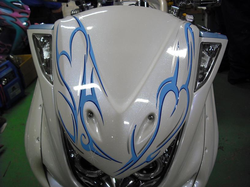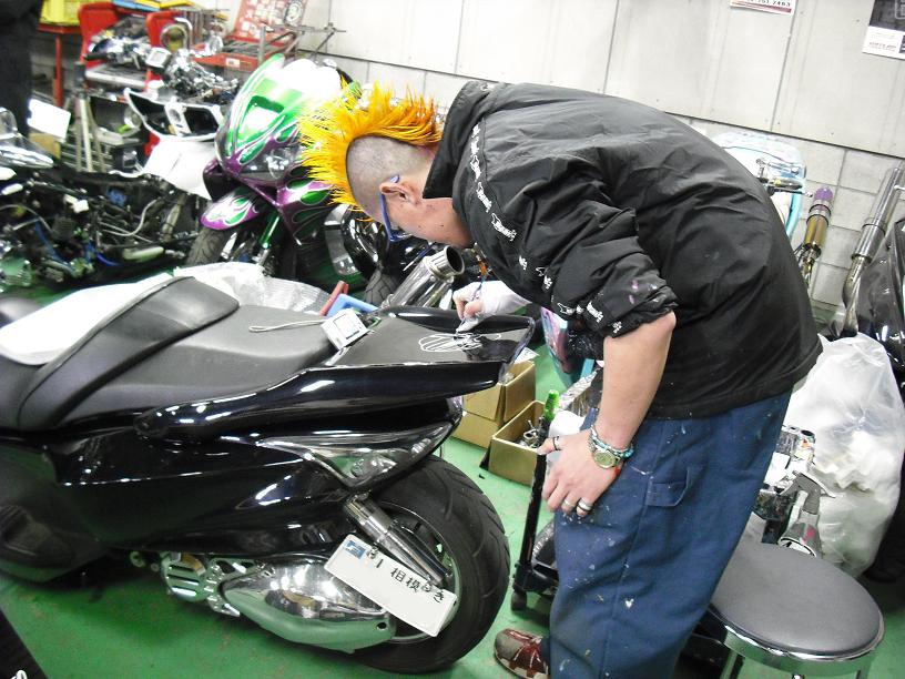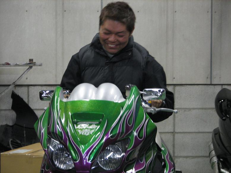 マイバイクを撮るみちゃさん 完成フロントマスクy(^ー^)yピース!