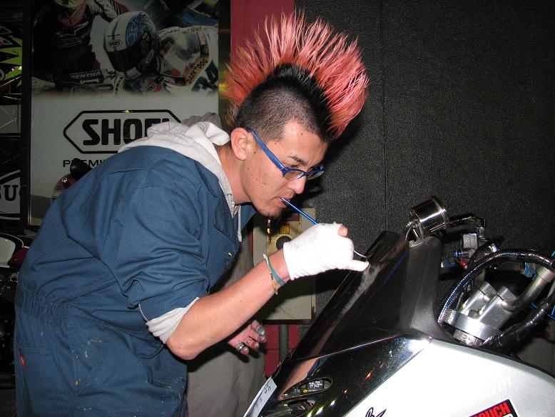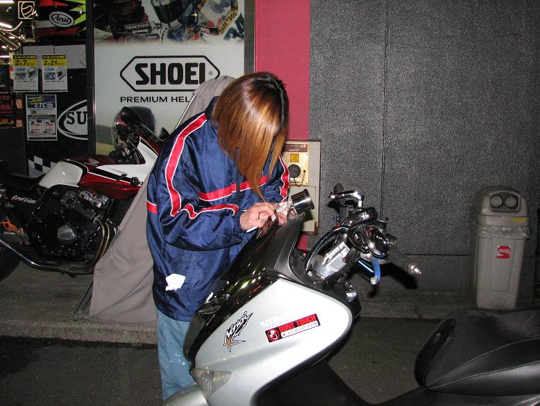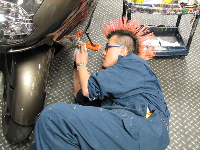 お友達のバイクにピンストを入れてもらう為