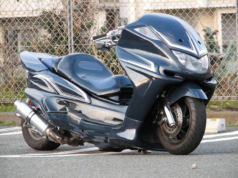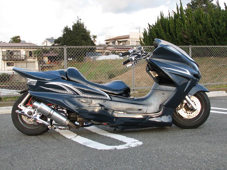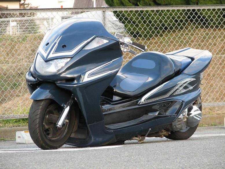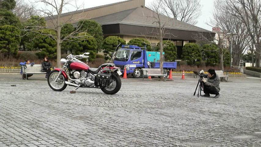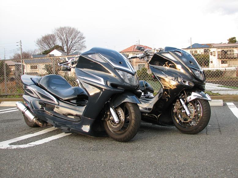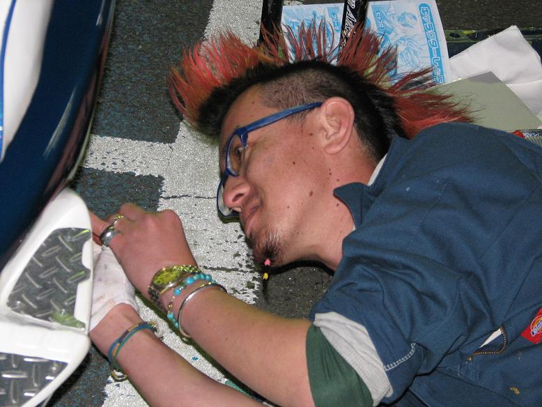 我が家のドラスタ400にピンストを入れてもらうのに息子と打ち合わせに