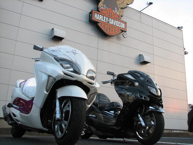 お友達のママさんとBSで場違いなハーレーショップに