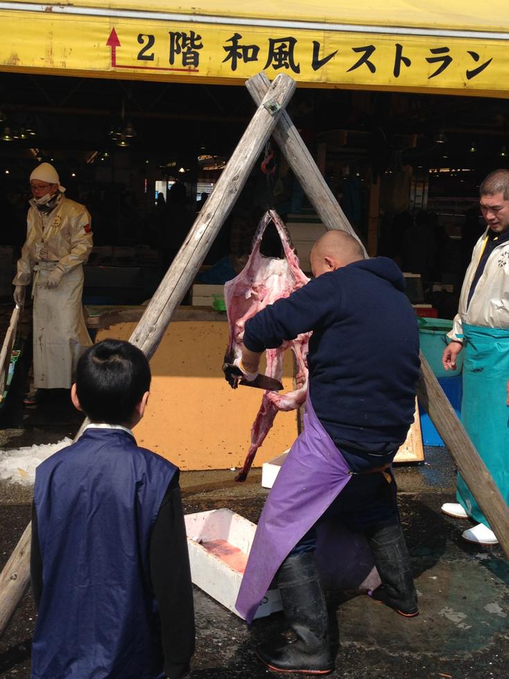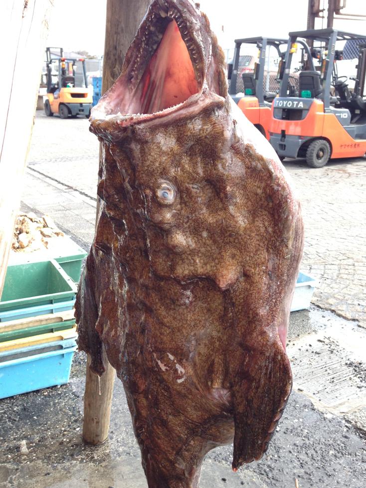 茨城県那珂湊経由で食事して行く事にアンコウの吊るし切りをしてました