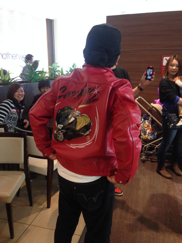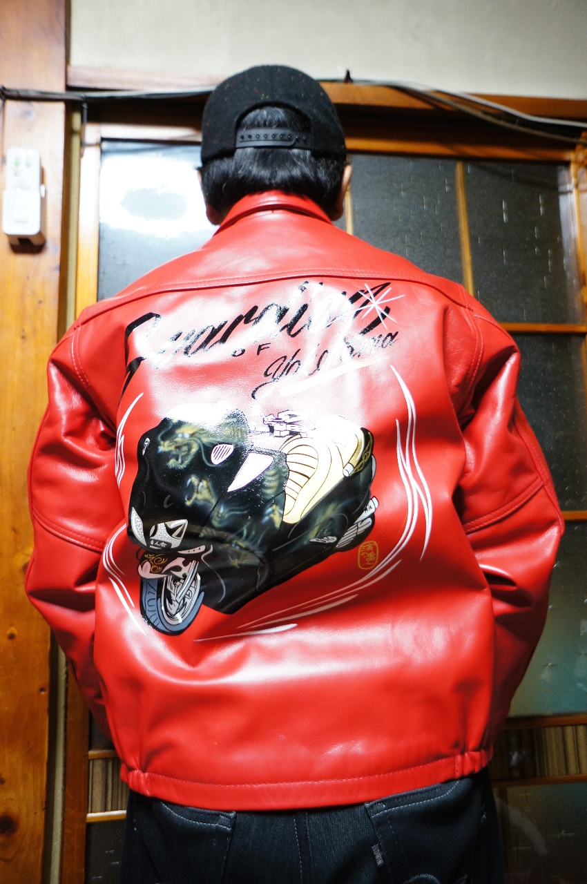 今日は家族とバイク仲間に還暦のお祝いに赤のライダーズ革ジャンを頂きました